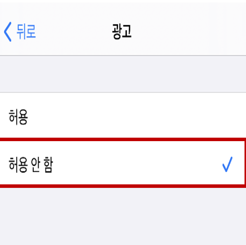 6. 광고를 허용안함으로 바꾸주시면 됩니다. 여기서 끝이 아니에요 마지막 한단계가 남앗어요!