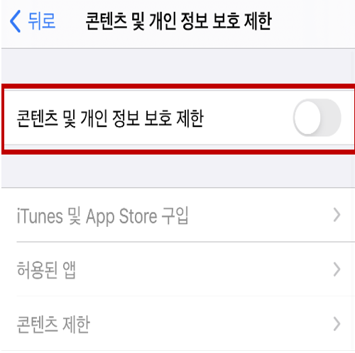 4. 컨텐츠 및 개인 정보 보호제한을 켜주세요!!