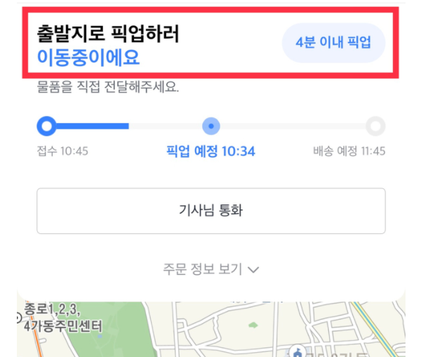 그리고 카카오T 퀵서비서의 좋은점은 실제 현제 상황에 대해서 바로바로 알수있다고 하더라고요.
