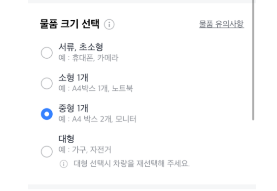 그리고 오른쪽 상단에 있는 물품 유의사항을 꼭 참고하세요.