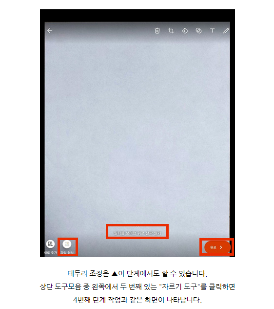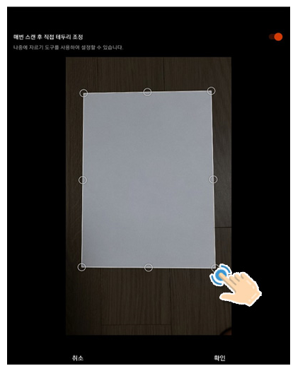 (상단에 매번 스캔후 직접 테두리 조정을 헤제하면 테두리 조정 단계 없이 바로 아래 단계로 이동함)
