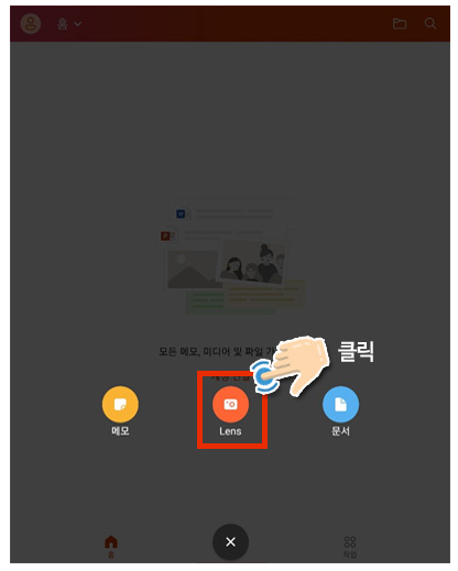 메모,lens,문서 중에서 lens를 눌러누세요.
