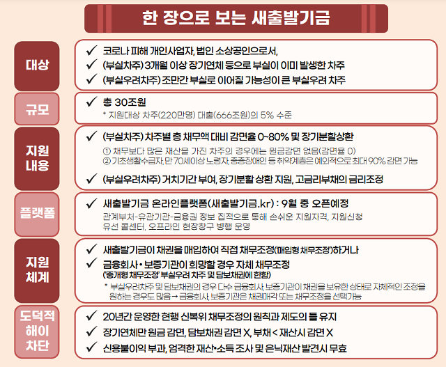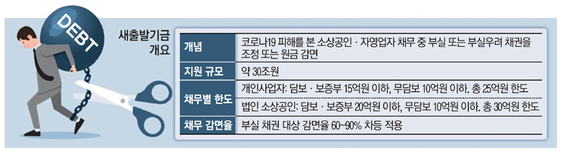 - 채무조정 지원 대상 : 코로나19로 피해를 입은 부실 또는 부실우려에 해당하는 개인사업자·소상공인 中