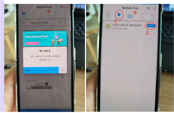 팩스 수신 같은 경우도 팩스 상단에 수신내역을 누르시면 바로 확인 가능하시고 발신내역의 받은 팩스를 눌러 보시면