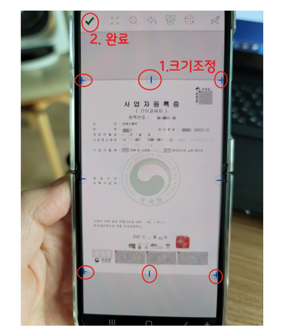 갤러리에서 사진을 선택 후 크기 조정르 해주세요. 내가 보내는 부분이 완전히 맞게 해주세요.