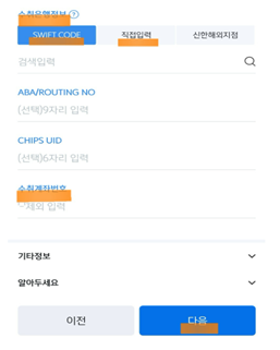 -Swift code(numbuer) : 송금 받는 은행에 부여되어 있는 고유 영문자 식별코드