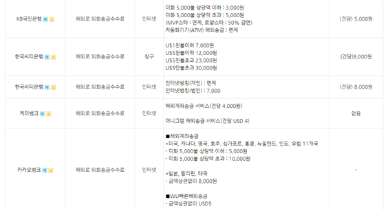 은행을 이용한 방법도 은행마다 각각 금액에 따른 수수료 빠른 송금에 의한 수수료등 각 은행마다 경우에 따라 다르기 때문에 한번 살펴보시고 편하신 방법으로 송금 해주시면 되요.