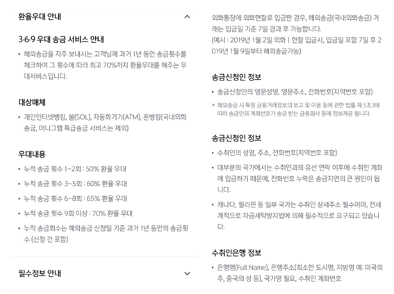 그리고 환율 우대 같은 경우 누적 송금 회수에 따라 다르게 해주고 있어요.