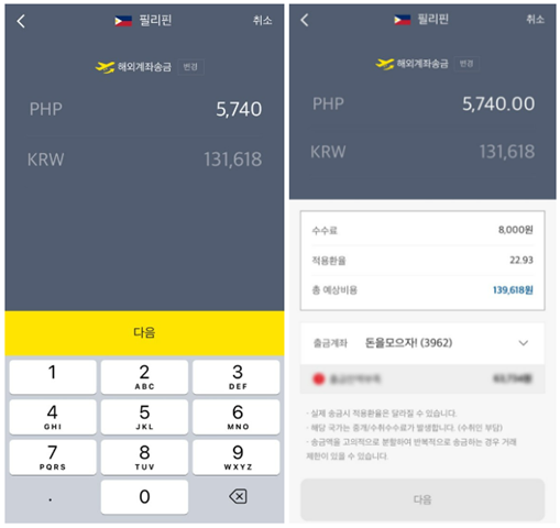 그리고 금액을 입력후 다음을 눌러 주시면 돼요.