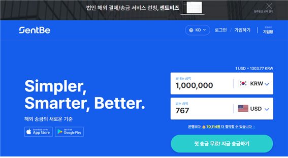센트비의 장점은 해외송금는 어렵지 않아요. 또한 환율 경쟁력! 사전에 계좌 등록시 두세번으니 클릭으로 손쉽게 해외송금이 가능하다는 점이에요.