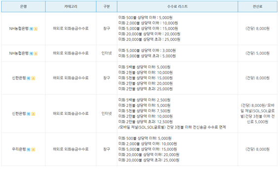 | 금액 | 해외송금수수료 | 전신료 | 중개수수료 수취수수료 |