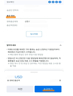 | 송금통화 | 국가별 통화 | 미화(usd)달러 |
