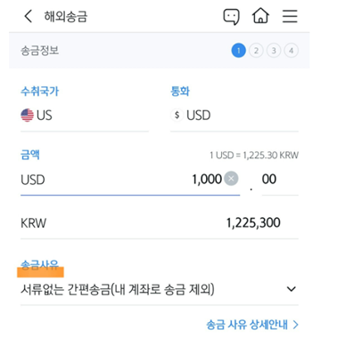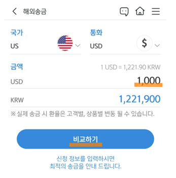 필요한 해외송금 서비스 선택->약관 동의->해외송금 누르시면 송금정보 입력으로 들어가요.