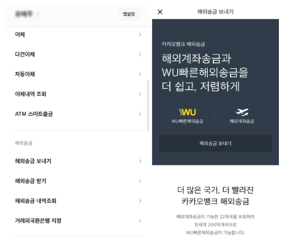 카카오뱅크 계좌 송금 vs 웨스턴유니온