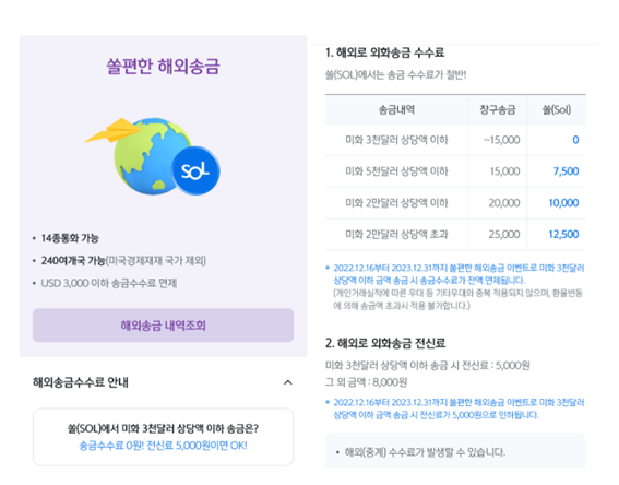 해외송금 수수료는 금액에 따라 다르는데 신한은행은 3천달러 이하는 수수료 무료에요(수수료 무료) 외환송금 전신료 8천원은 따로 지불해야 하지만 2023년은 3천달라 이하 송금시 5천으로 가능하다고 해요.