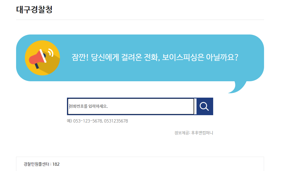 대구경찰청 보이스피싱 확인 사이트 : https://www.dgpolice.go.kr/PageLink.do?link=/dgpo/05/70