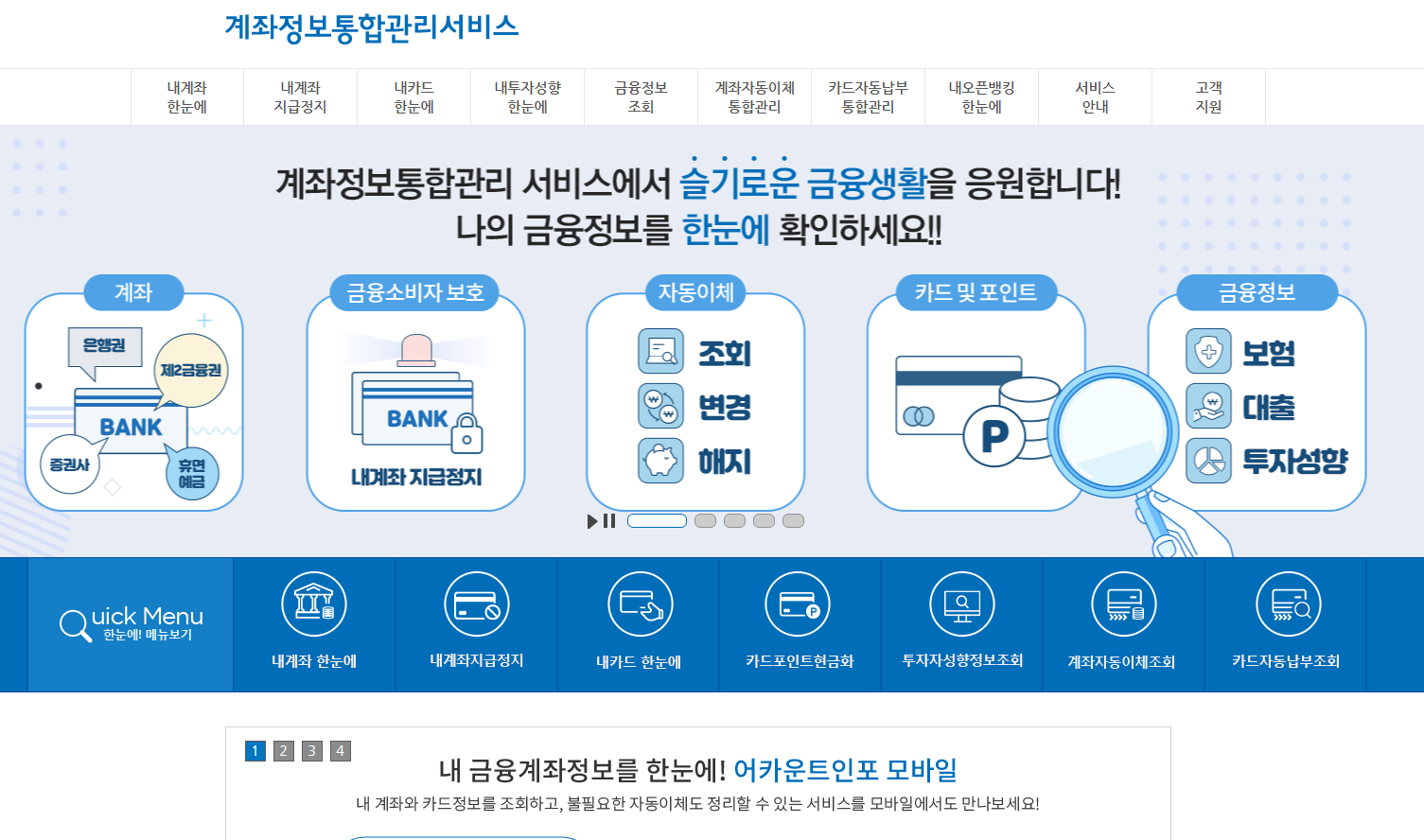 계좌정보 통합관리 서비스 사이트 주소 : https://www.payinfo.or.kr/account.html