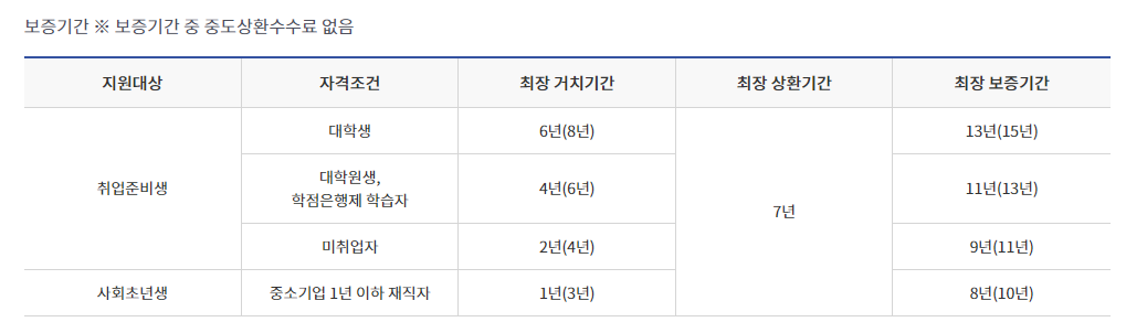 ※ 최장보증기간 : 원금과 이자를 갚아야하는 기간(=분납횟수)