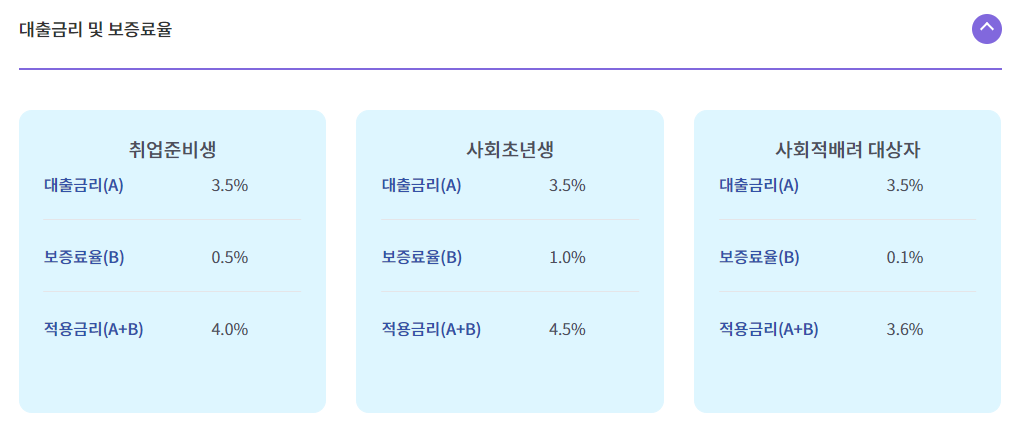 - 대출대상 : 19세~34세 연소득3500만원 이하 해당자(취업준비생,사회초년생(중소기업 1년 이하 재직자)