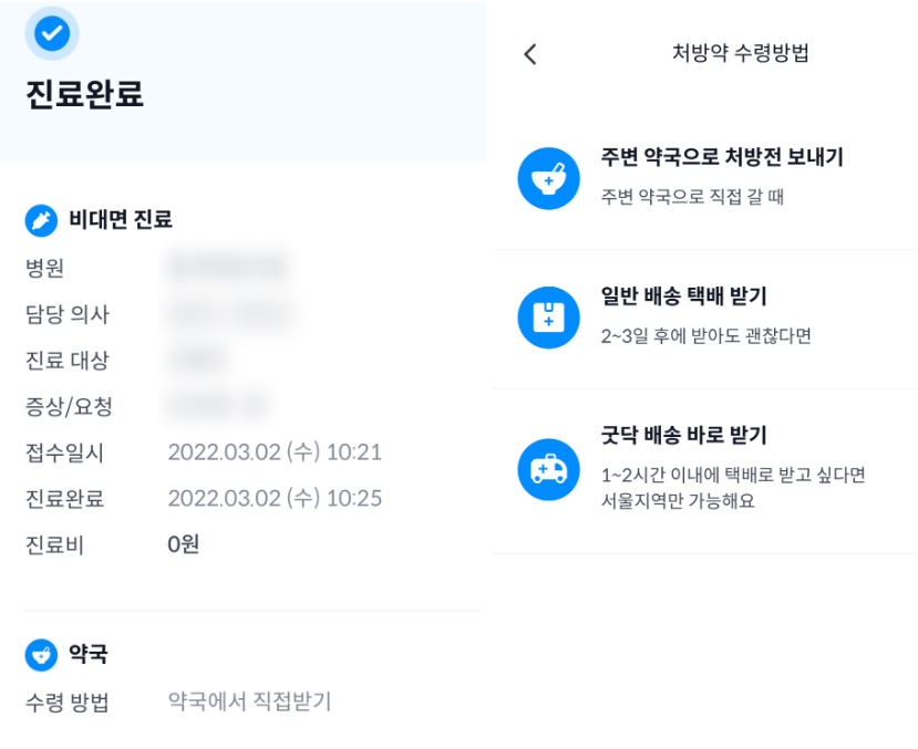 -수령 방법은 주변 약국에 처방전 보내든지 일반 택배 그리고 굿닥배송(서울만 가능) 을 통해서 수령 가능합니다.