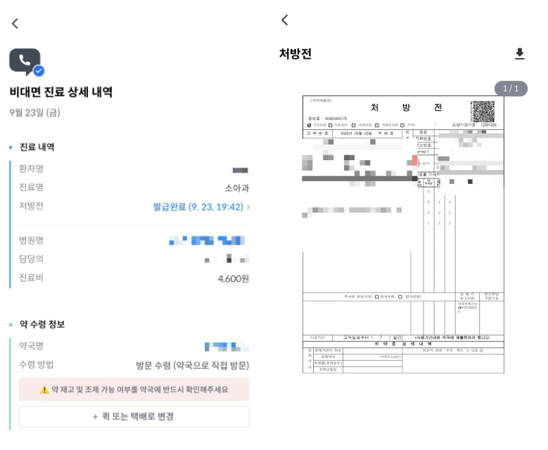 위 사진처럼 처방전도 수령가능 합니다.