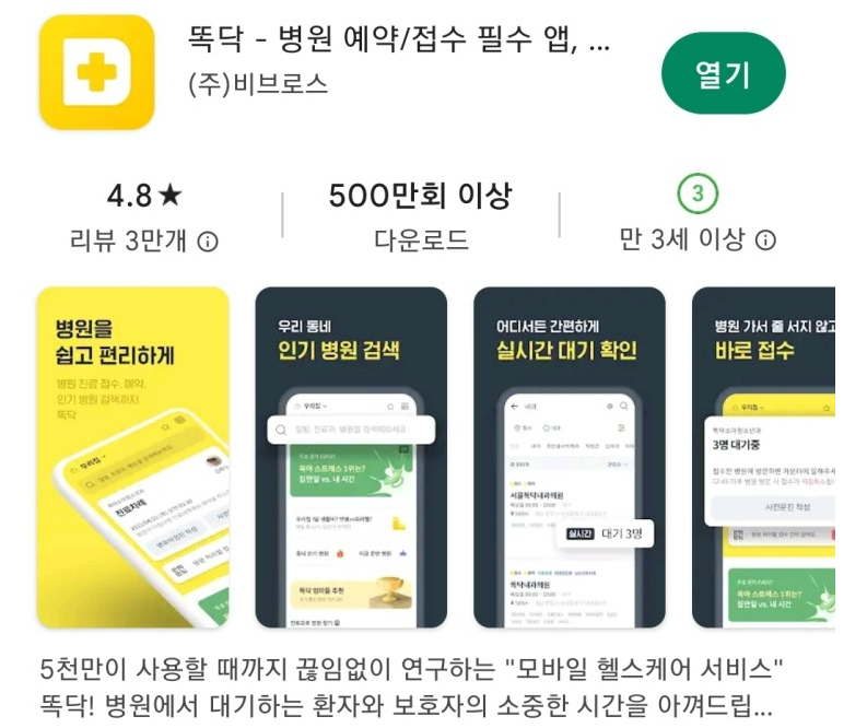 1. 똑닥 어플 사용방법 및 예약 방법
